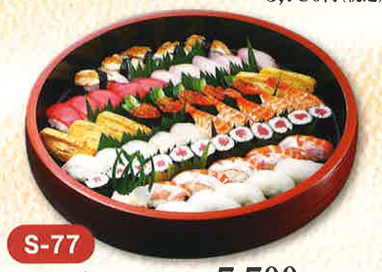 | ・にぎり寿司(5人盛)10,000円(税別)▲写真クリックで拡大します | ・にぎり寿司(5人盛)7,700円(税別)▲写真クリックで拡大します |
