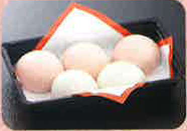 6.団子の下に敷く白い紙は、(たかつきの大きさに合わせて)長方形に折り、折って交わる部分(左図*印)が、正方形の2辺になるようにします。